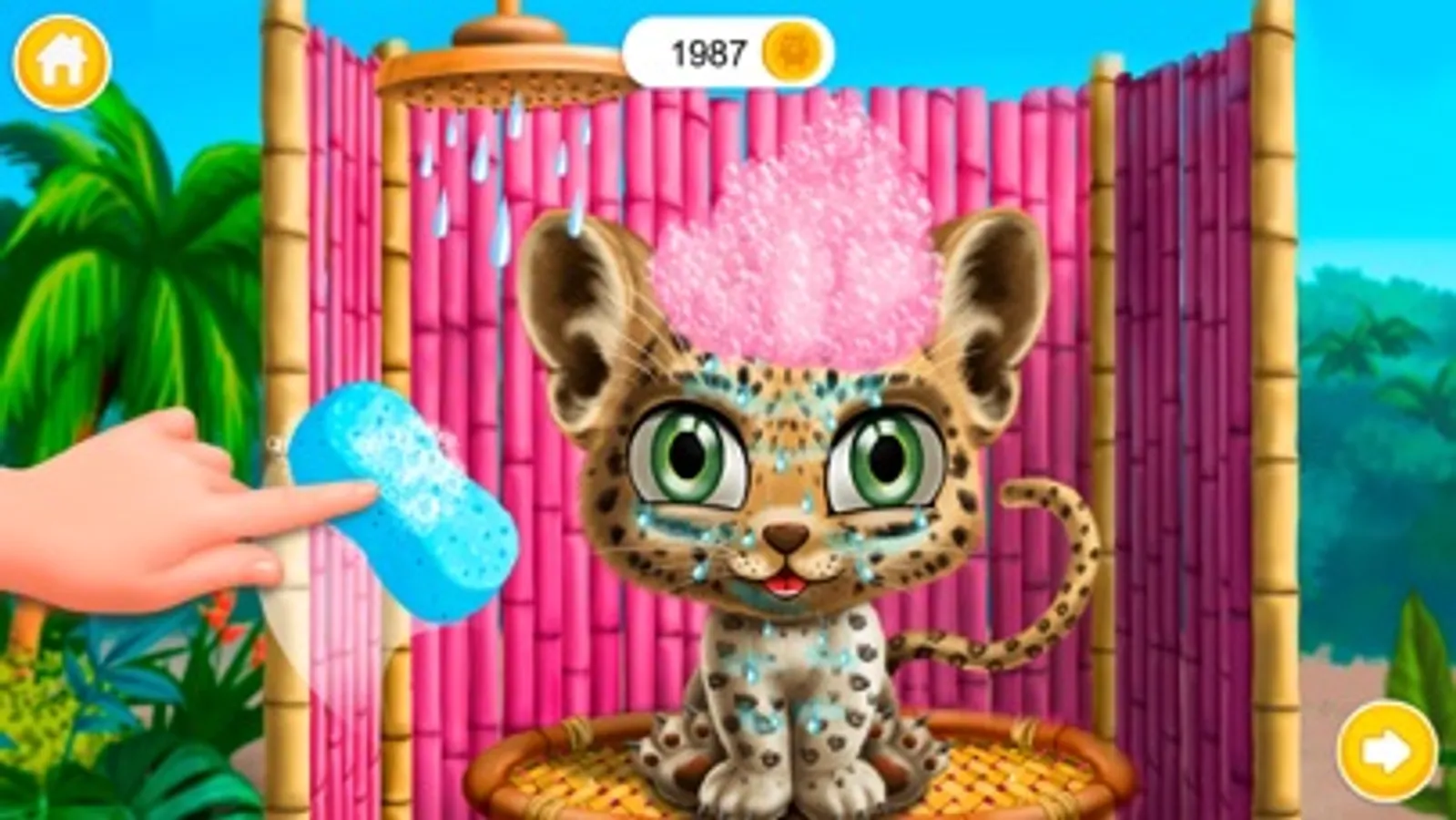 It’s jungle animal mom and baby makeover time! Beautiful animal mommies are bringing their cute jungle babies to Jungle Animal Hair Salon. Take care of the furriest and cutest wild pets: mommy and baby leopard, mommy and baby giraffe, and a teeny-tiny baby kitten. Color, cut, wash, dry, comb, style and dress up tropical animals every day!