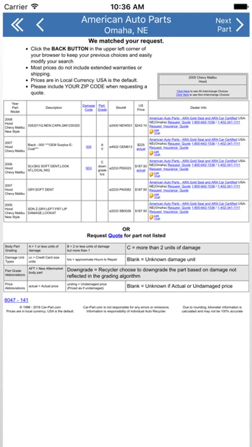 • View information about each part we have available