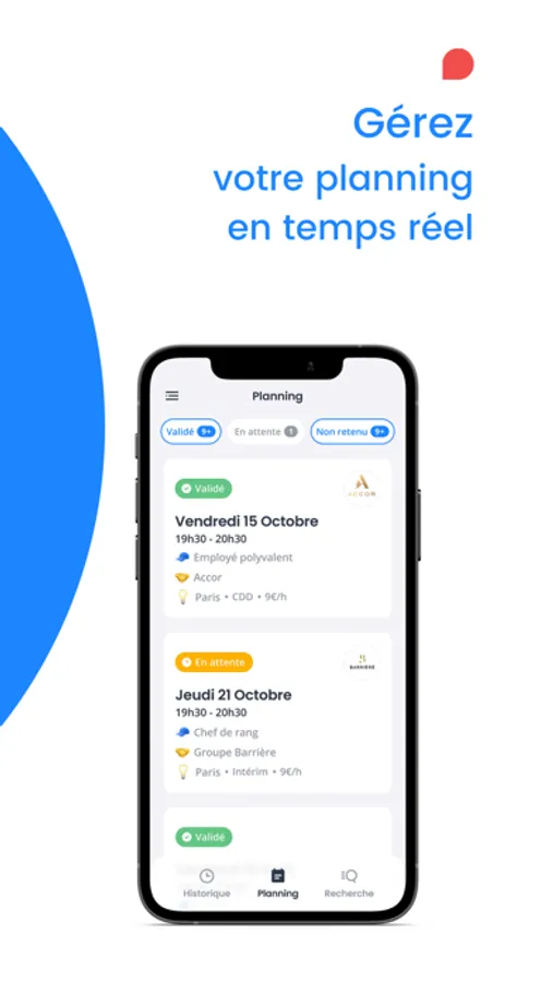 Avec notre application mobile, créez votre profil en seulement quelques minutes et gérez votre planning en temps réel.