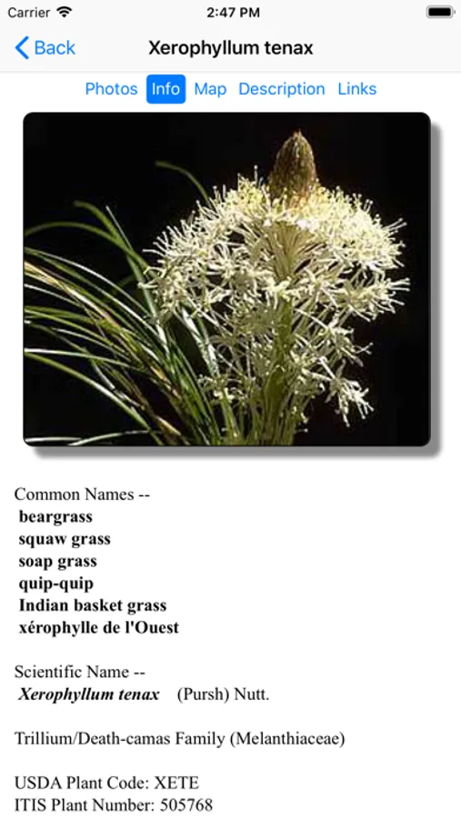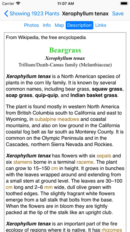 This App, which operates without an internet connection, helps find and identify plants. When you give the App information about a plant, such as its location, flower color and the time of year, the App will quickly show you which plants match your selections.