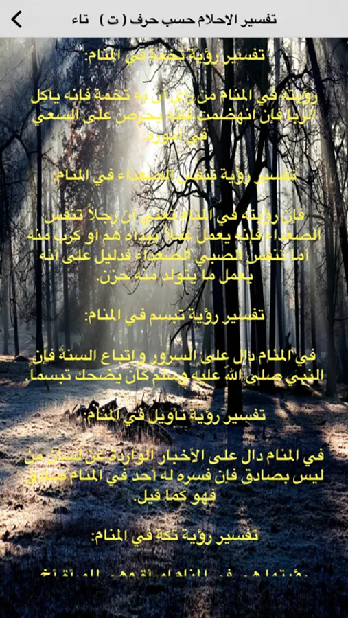تفسير الاحلام في هذا التطبيق مفهرس حسب الحروف الابجدية لتسهيل وصول المستخدم الى تفسير المنام و الحلم