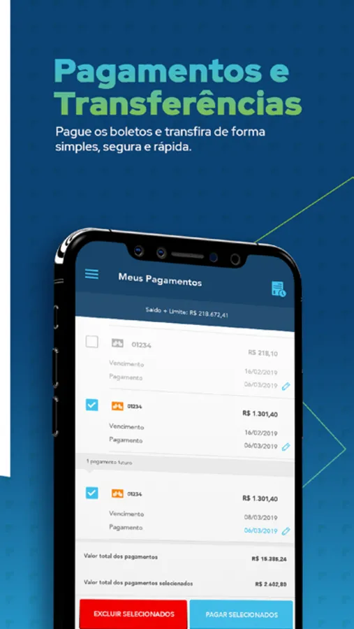 • Pagar títulos eletrônicos DDA (Débito Direto Autorizado) e títulos Martins;