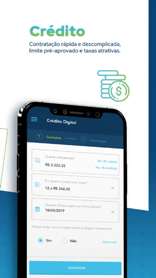 • Realizar a contratação de crédito com o dinheiro disponível em poucos minutos;