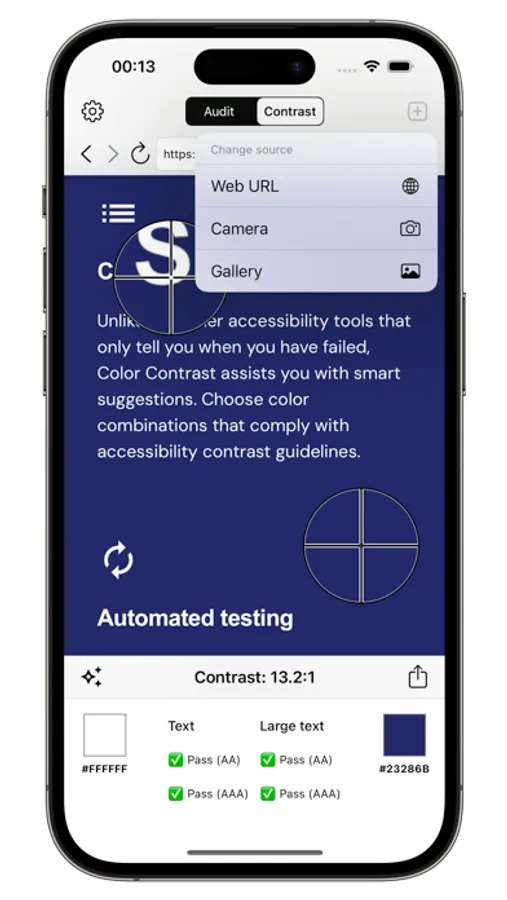 2. Color Contrast is a tool to measure the contrast between two colors in a screenshot or mobile website, helping ensure your app meets the internationally recognized recommendations in the Web Content Accessibility Guidelines (WCAG), for both versions 2.1 and 3.0 (Silver)