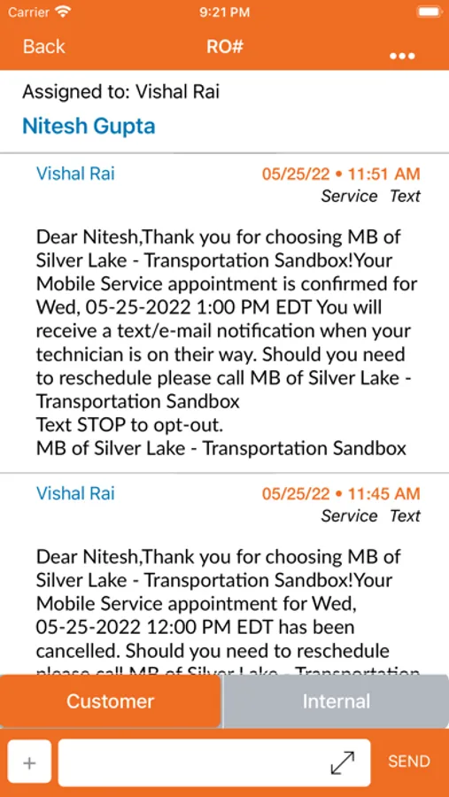 The myKaarma application is a mobile application for Automotive Dealerships. It provides functionality and features to streamline the interaction with Service Customers who have appointments or vehicles being serviced at the Dealership.