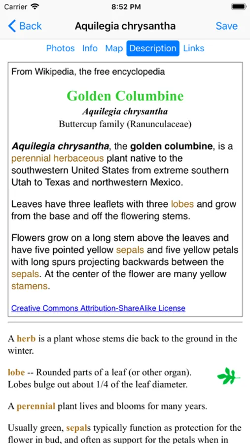 This App helps find and identify plants. When you give the App information about a plant, such as its location, flower color and the time of year, the App will quickly show you which plants match your selections.