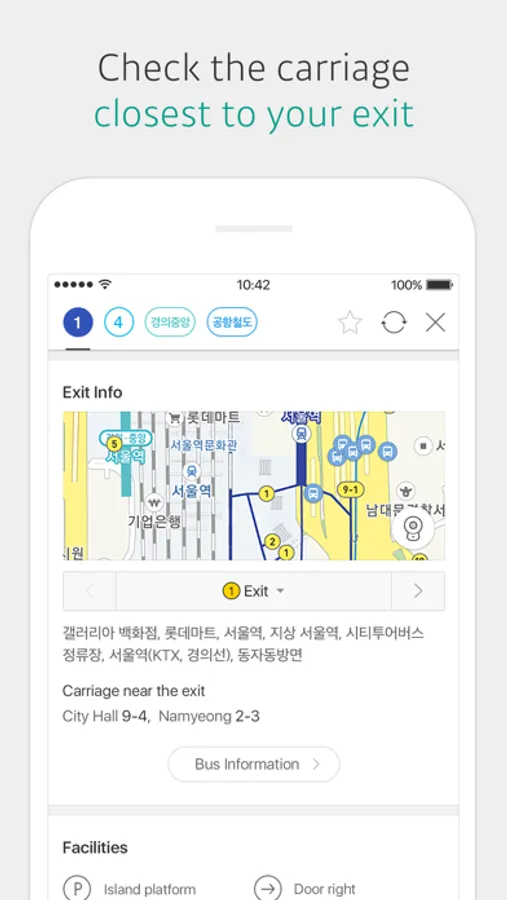 “What is the carriage nearest to Exit No. 5?” KakaoMetro can tell you which carriage to board to arrive adjacent to the stairs leading to the ticket gate.