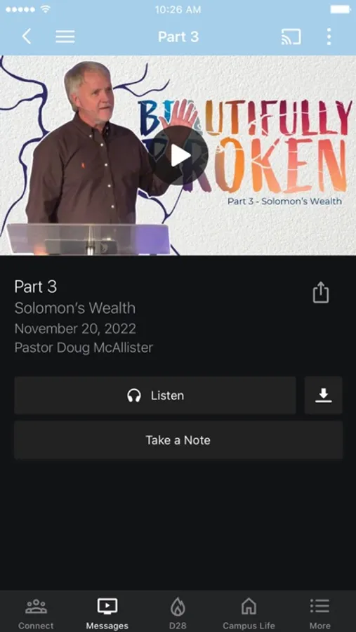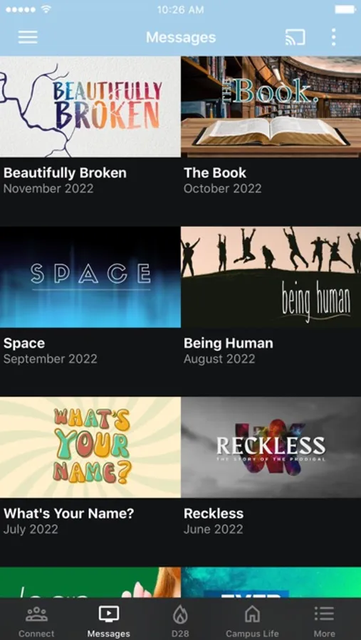 . Media: Listen to past messages on our media tab. Perfect for on the go ministry! Whether you are at the gym or in your quiet time this is an easy way to listen to messages that won't take up any memory from your phone!