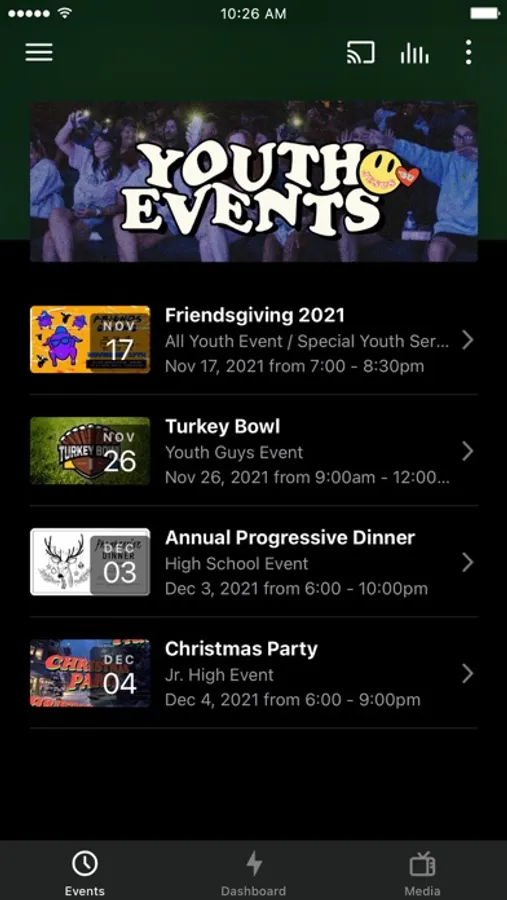 The Youth App gives our youth students & their parents access to register & find details for our event information, listen & share archived message, and more!
