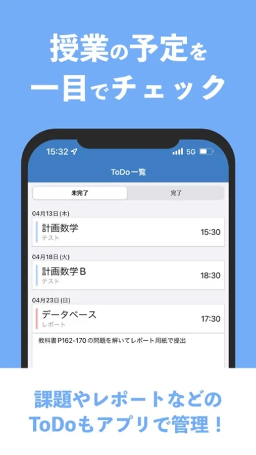 期日が近づくと、あなたのiPhoneに自動で通知されるので、レポートの出し忘れやテスト勉強のし忘れを防止します。