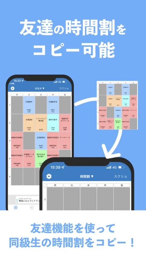 - アプリで友達になったユーザー同士で時間割・授業・ToDoの情報の見たりコピーしたりすることがと可能