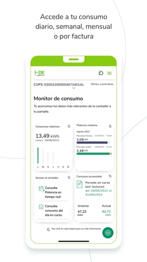Here you can see your energy consumption, the power you are using or know the time that light will take to return if there is a fault or programmed cut that affects you, in the simplest, fastest and most intuitive way.