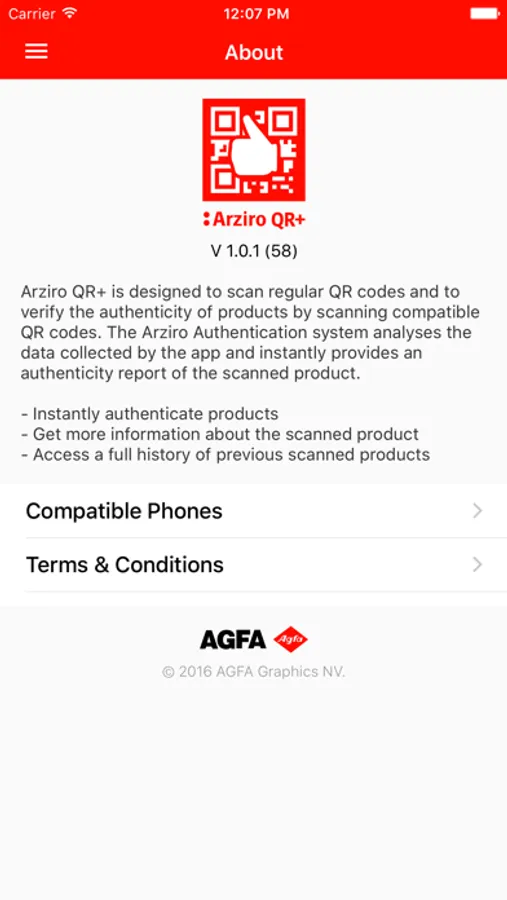 This app is part of the Arziro Authenticate SaaS solution from Agfa Graphics which enables consumers to check if a product or item is genuine. It also enables brand owners, government entities and printing companies to protect products or items against counterfeiting...