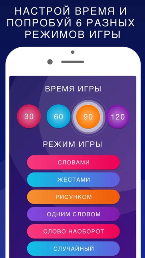 Слова можно объяснять по-разному, в зависимости от выбранного режима игры: