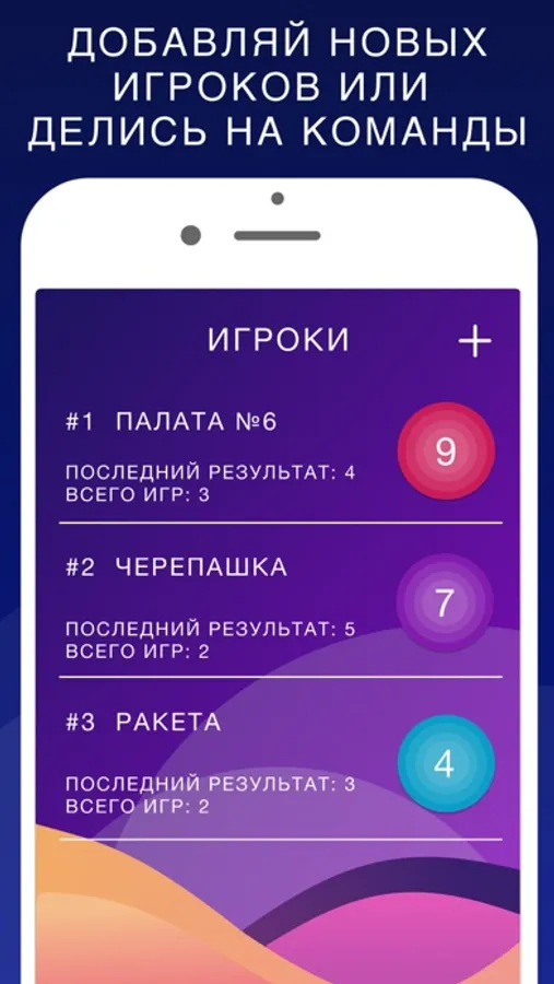 В игре можно добавлять новых игроков или команды. Для каждого игрока показан его последний результат, например: Оксана, 5 очков. Чтобы изменить имя игрока, нужно просто нажать на него и ввести новое – от 1 до 14 символов.