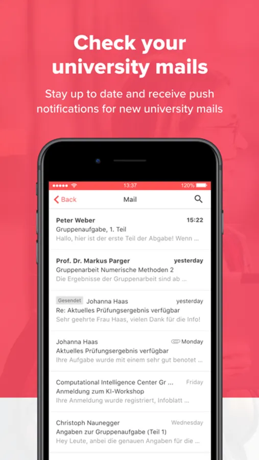 The integrated mail client makes sure you don't miss any e-mails from professors or colleagues.