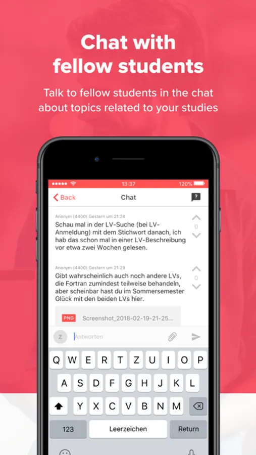 You have a question about a lecture? Communicate with your colleagues and ask important questions about your courses and your studies!