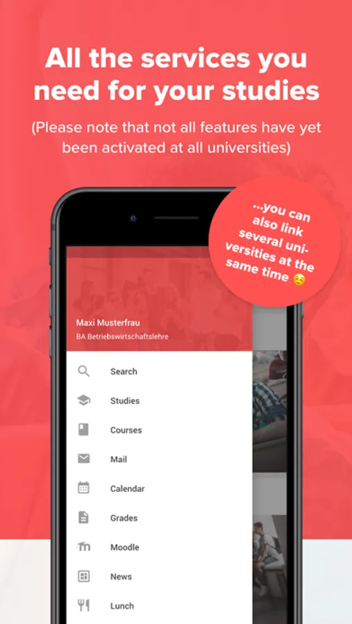 Course overview, timetable, mail, lunch menus, vouchers, job offers and chat - Studo offers you everything in one app! Over 400 universities in Germany are already supported by Studo. Find your university directly in the Studo App!