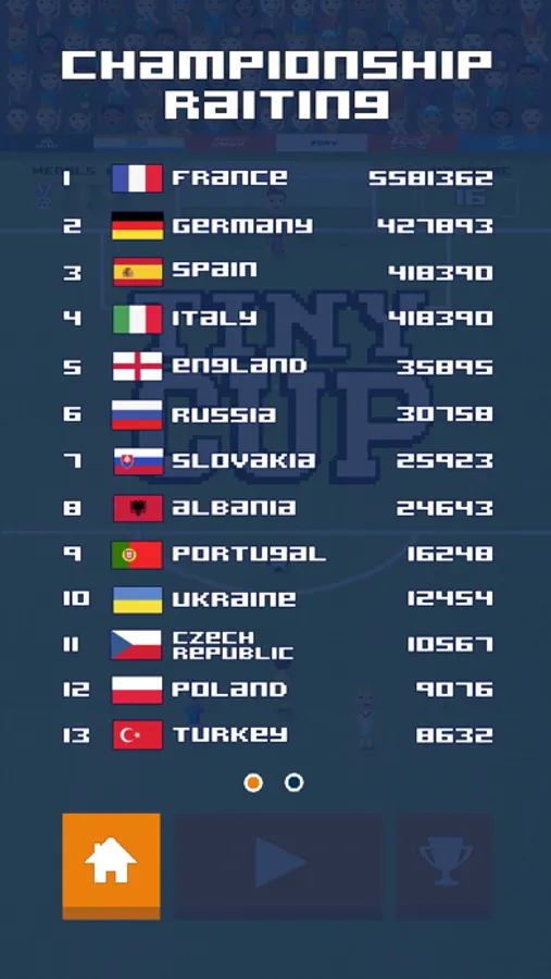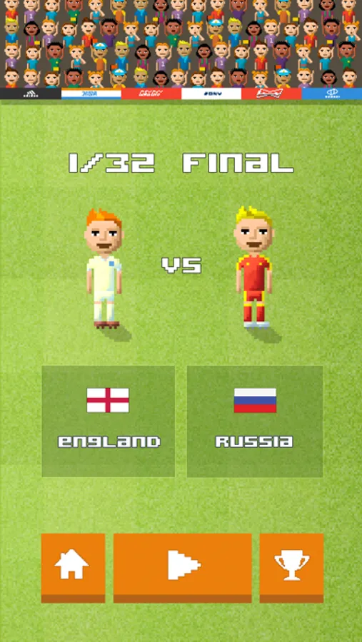 You find yourself in a pixel atmosphere of the football World Cup, you are to choose a team and participate in the World Cup.