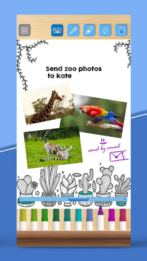 With this color notes doodles camera app, you can write all your ideas, take notes, make sketches or doodles as memos, shopping lists and draw everything that comes to your mind in this post it notebook, with an effect of handwriting. Very useful, practical and easy to use. There is also an amazing function of camera which makes it possible to combine pictures and photos with your colorful memo notes. You can either choose a picture in your photo gallery and insert into your notes that you´re creating, or you can take a picture and put it in the memo notes. Kids and children from 3 years old can also use it as coloring book to draw and paint things like princesses and animals or handwriting.