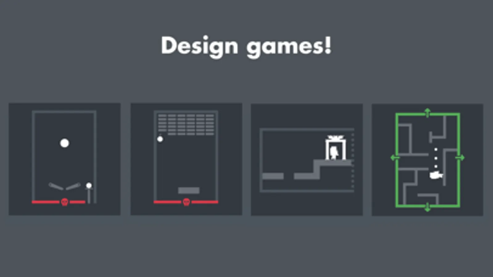 Make adventure games, platformers, lander games, pinball games, ball and paddle games, text puzzlers, and mazes. Create your own characters! Make games with zombie mobs, hot lava, disco bricks, crystal geysers, trampoline tiles, oil slicks, wandering stars, and more.