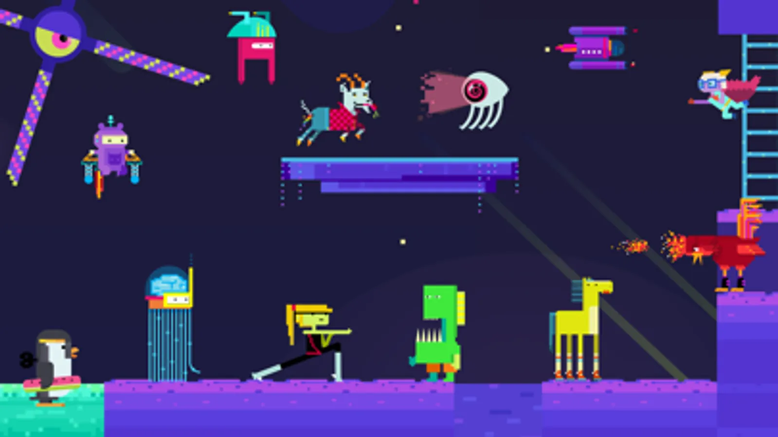 Start quickly with a classic game to build on. Or invent your own! Create levels with terrain blocks, obstacles, hazards, enemies, and more. Make your game small or massive with lethal boundaries or magic passageways. Control gravity to make characters walk or float. You decide how many lives they get.