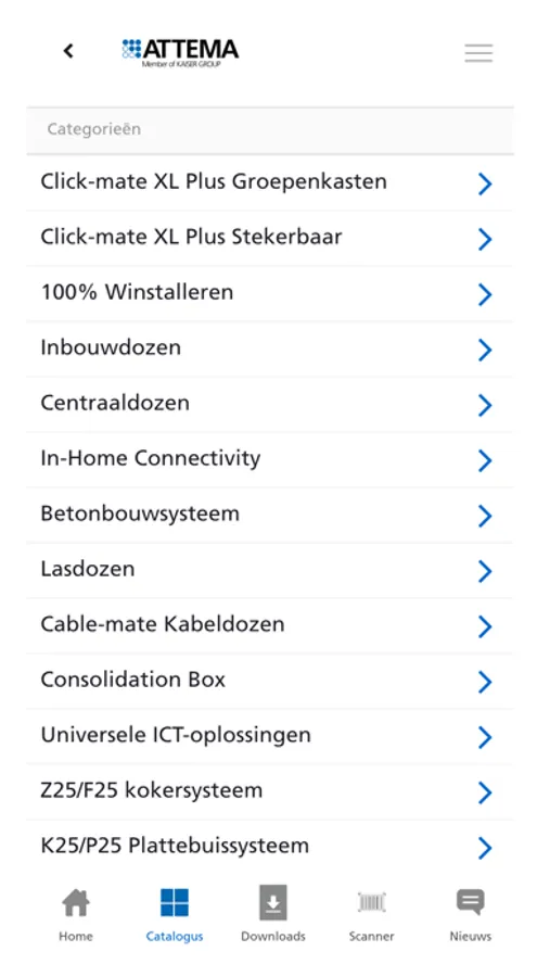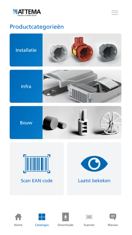 - Catalogus: volledig overzicht van het totale assortiment installatiemateriaal