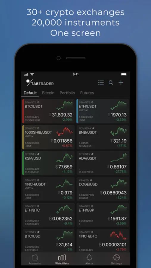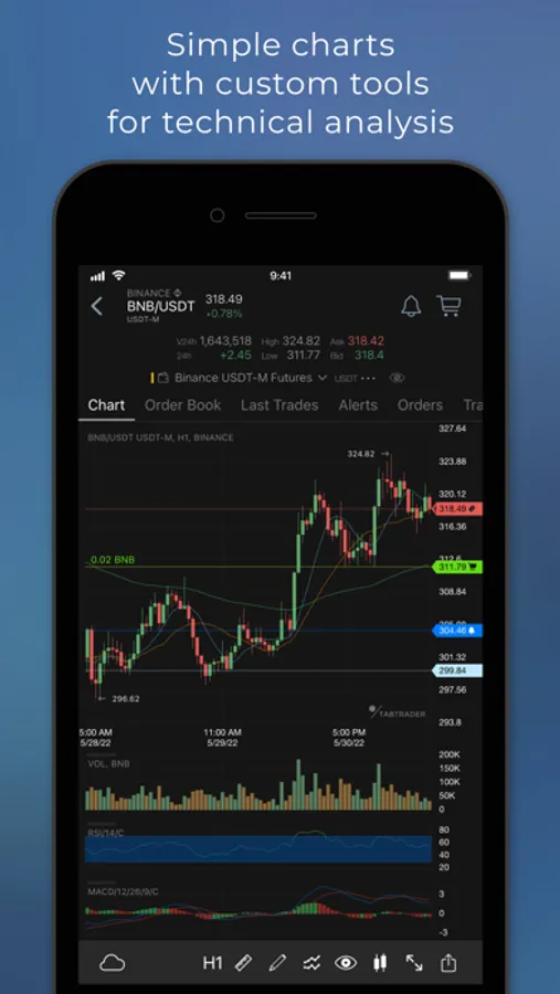 TabTrader is a crypto platform that provides the best trading tools to control profits and minimize risks and losses. Select various crypto pairs, connect to over 20 popular exchanges, execute trades, analyze charts of more than 20,000 instruments and monitor your portfolio.