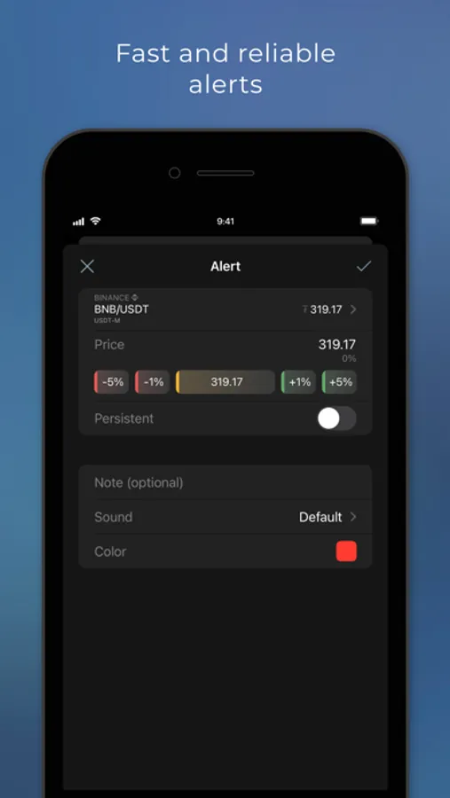 An alert is a type of notification that is instantly sent to you by a push message when the specified price for filled orders or the price of interest is reached. It allows you to follow price fluctuations, market trends, or events. With instant alert notifications you can give up constant monitoring of price changes.