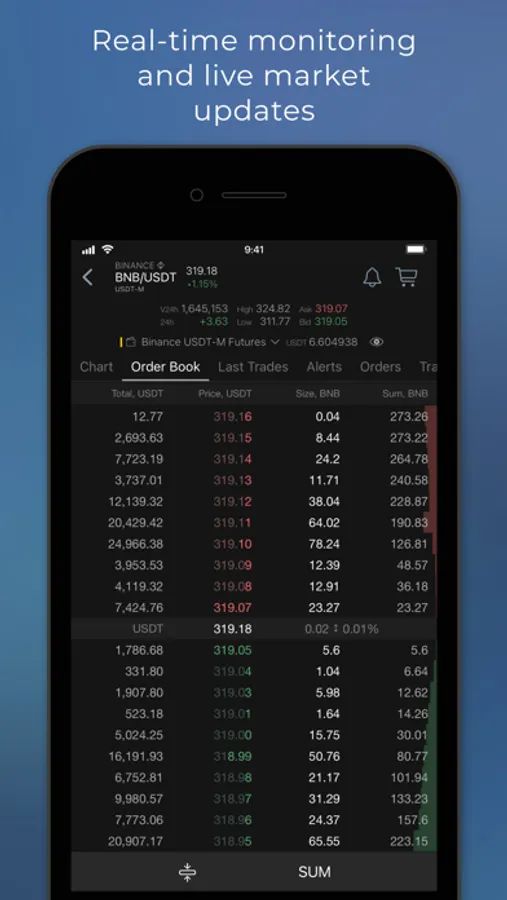 • Monitor cryptocurrency prices on the most popular exchanges in real time, including Binance, Kraken, Bitfinex, Huobi, Bitstamp, Bittrex, HitBTC, Coinbase Pro, BitMEX, Gemini, Poloniex, EXMO, Mercado Bitcoin, KuCoin, Bybit, etc.