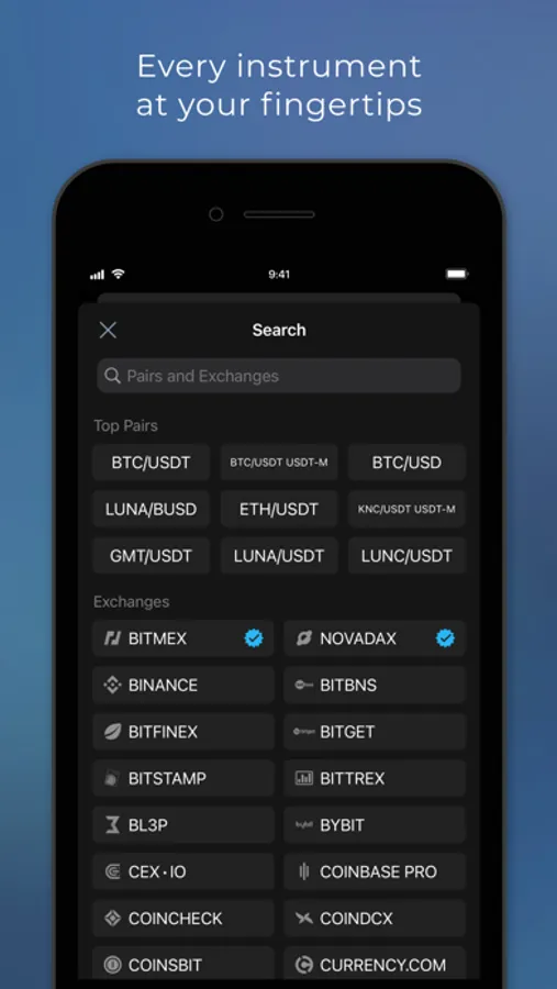 • Trade within a single app, instead of having multiple exchange apps installed.