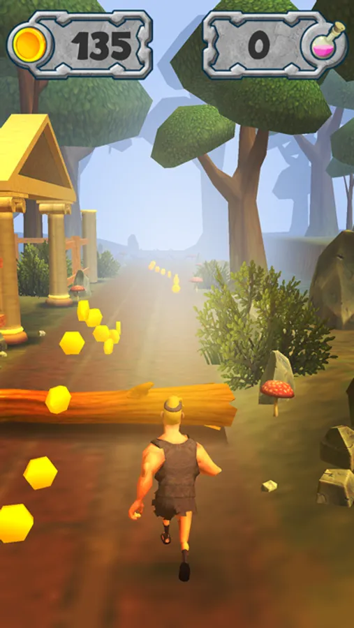 • RUN! Reach the boss fight by jumping over and slip under obstacles while running. Power up and run faster by collecting the special golden wing shoes. Jump and catch the magnet, to collect all the gold coins on the path. Enjoy gyro, tilt the screen and slip on iced or mudded paths while running. Collect potion bottles to continue when you crash the obstacles.