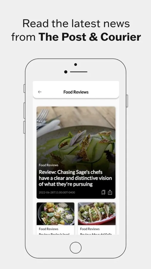 Easy to save stories by bookmarking, or share stories by email, text, and social media
