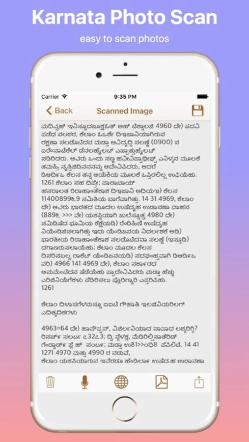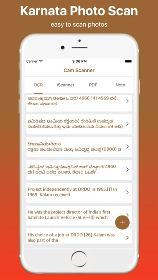 OCR (optical character recognition) feature recognizes texts in document images and extract them from images for later searching, editing or sharing.