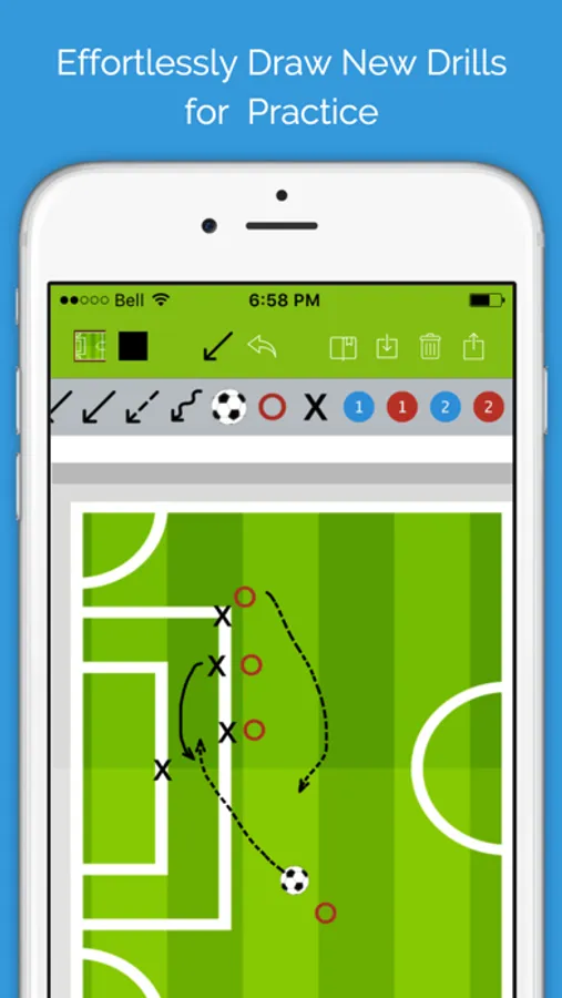 With Soccer Blueprint, you can effortlessly draw professional looking diagrams and share them with your team, with just a few taps!