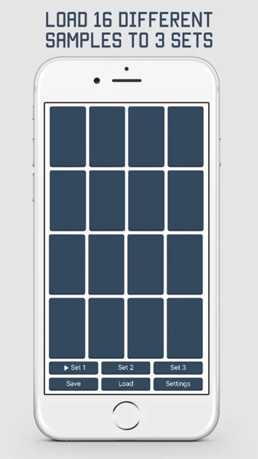 Samply - DJ Sampler lets you compose music easily using your iOS device. You can load different samples from your iTunes library to any button. You have 16 buttons and 3 sets to play with which leaves you with 48 different samples. To load sample hold the button few seconds and iTunes library will appear. When you choose the sample you can play it by tapping the button or you can edit its settings by opening sample settings and do a bunch of other stuff. You can save each set with save option and load it anytime.