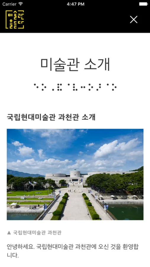 국립현대미술관 과천관 소개 오디오북으로 시각장애청소년 미술프로그램과 촉각책을 연계하여 교육용으로도 활용하는 미술관 앱