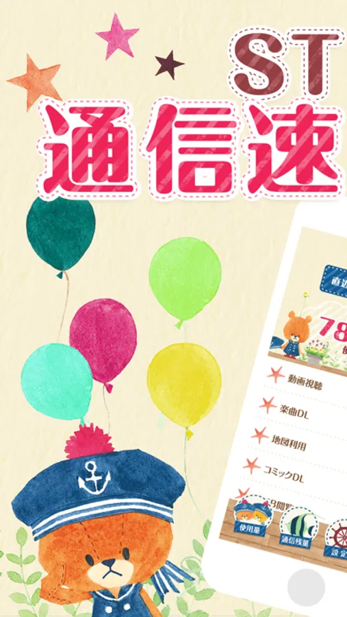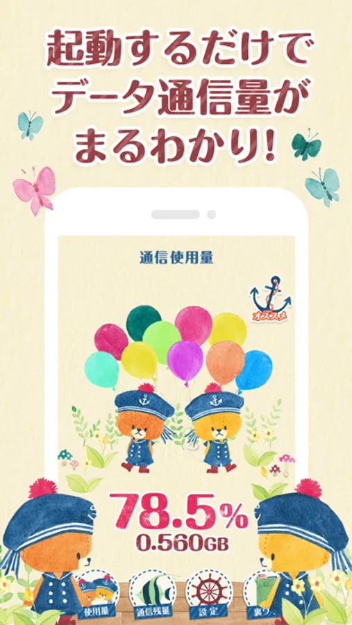 通信量を可愛いルル&ロロがお届け!残量によって風船の数が変化します。