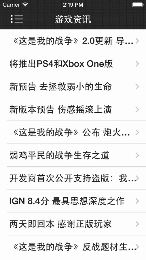 《This War of Mine》是一款来自波兰的游戏开发商11 Bit Studios制作的2d横版战争游戏,背景设定在一个战火连连的现代世界,游戏的视角从机甲战士转移到了寻找,你的目标就是去解救平民。《This War of Mine》有 FPS 的玩法,但更多的是一款惊悚的生存游戏,玩家需要根据个人的道德准则做出艰难的决策。比如,你可以尝试从避难所救出所有的难民,你也可以只带走一部分,剩下的平民安全也会有保障。“战争中,并非人人都想赴前线杀敌”,这是游戏中一句极具讽刺的口号。制作方希望通过本作向世人展示战争的另一面:国破家亡,流离失所。