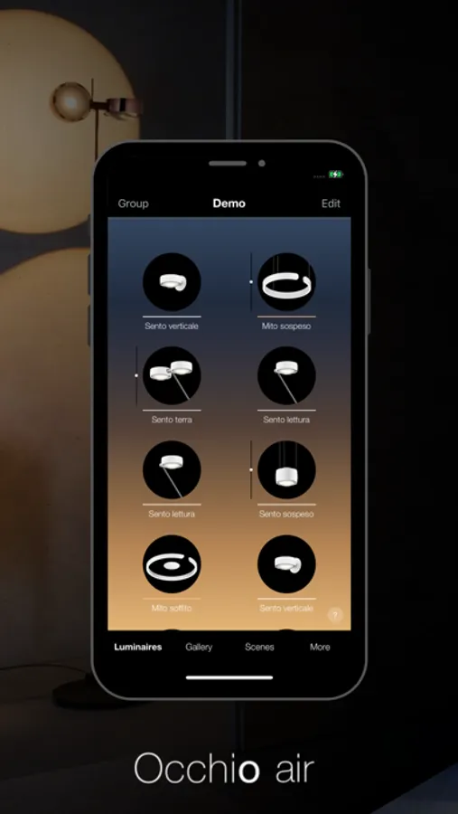 The Occhio air app offers unique possibilities for you to stage your space with light — with a maximum of ease. Setting up the system using the app is simple and intuitive! It's a breeze to control your luminaires — no wires needed. And that goes for your luminaires from Occhio as well as those from many other manufacturers.