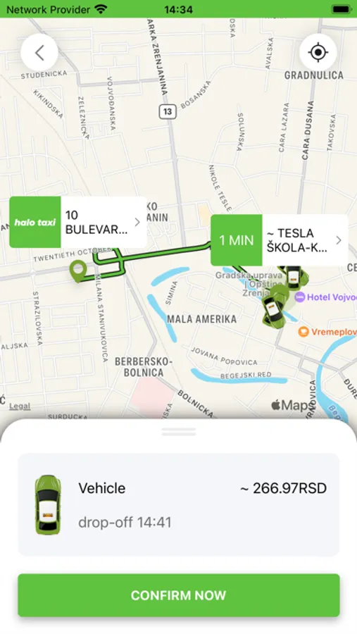 - HALO taxi će automatski locirati vašu adresu koristeći GPS u Vašem uredjaju