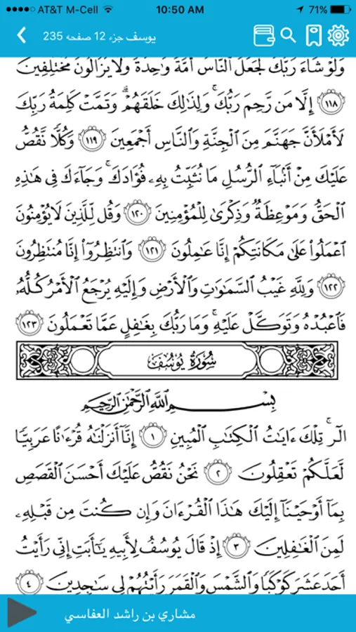 b- Listening: Ayah by Ayah or streaming, including 5 reciters: