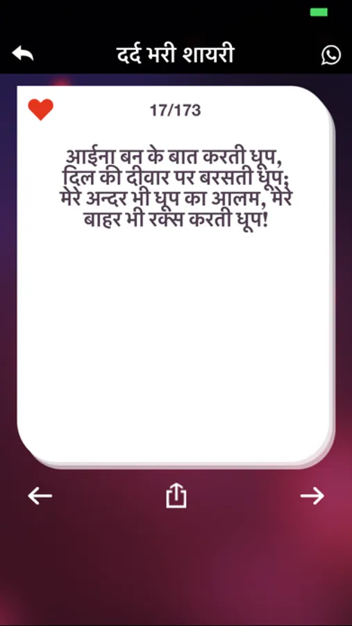 Shayari is unique poetic way to express yourself your feelings deep in heart. This app is the right place for Specially Dard Shayari on every Best in class categories.