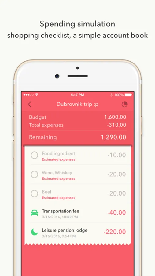 There is also "expected expenditure" feature to help more convenient use. You can simulate the dating and travel expenses in advance, and it can be used as a checklist when you go to shopping.