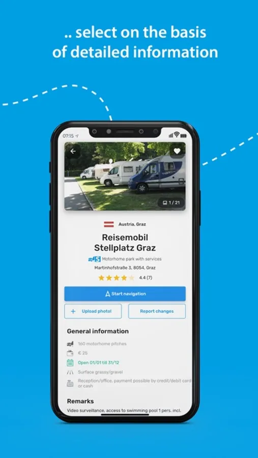 • Navigate easily, from the Camperstop-App, to the motorhome stopover with Google Maps or a navigation app of your choice