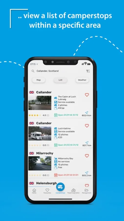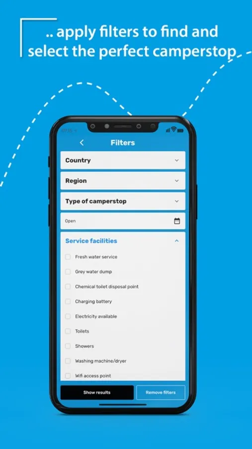 • Improved and more comprehensive filtering options make it easier to find a suitable motorhome stopovers.