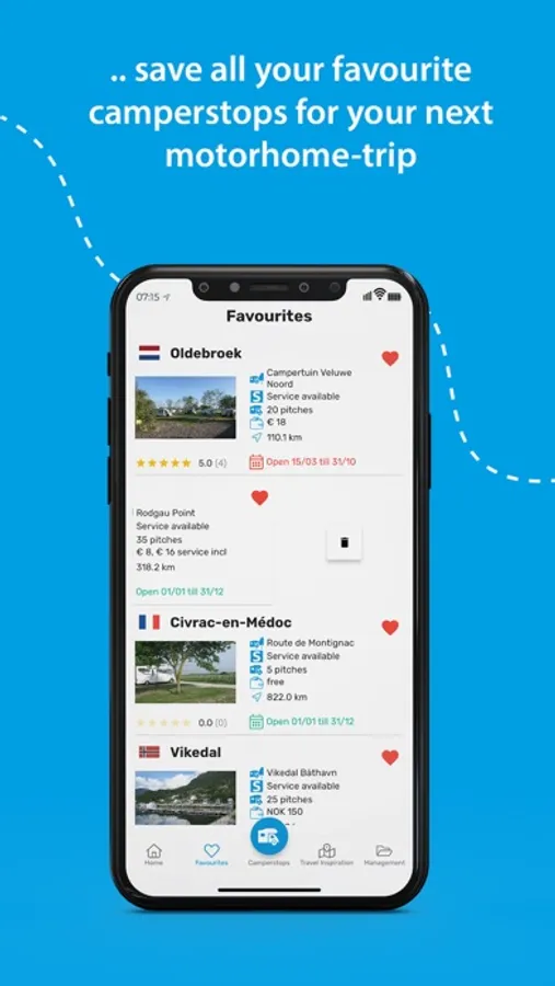 • Instantly see which overnight stays are near your current location or check out popular camperstops from other app users.