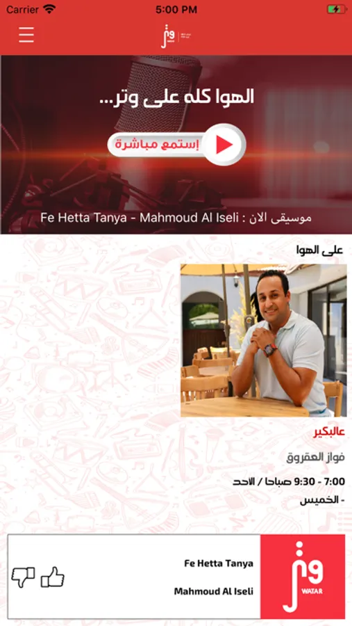 Watar’s mission is to engage the diverse target audience with genuine talk shows regardless of their backgrounds while entertaining them with good Arabic music, with a vision to be the number one radio station of choice for Jordanians by continuously intriguing the target audience with unique talk shows and entertaining music.