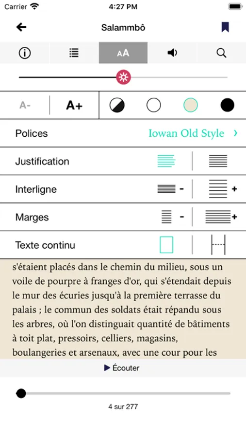 - Customize your reading experience: choose from a selection of fonts and color themes; change the line spacing or the margin size.