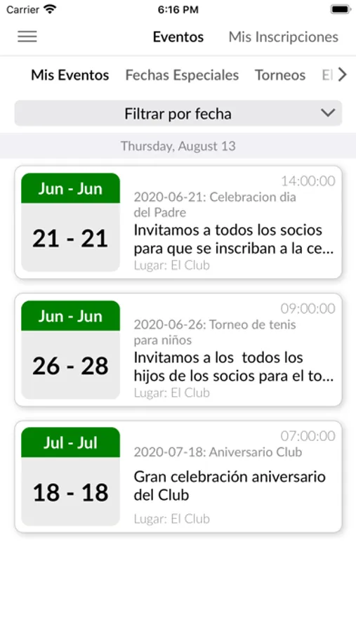 Aplicación para en manejo de información del club para los socios con sistema de reservas, noticias, galerías, eventos y segmentación de información.